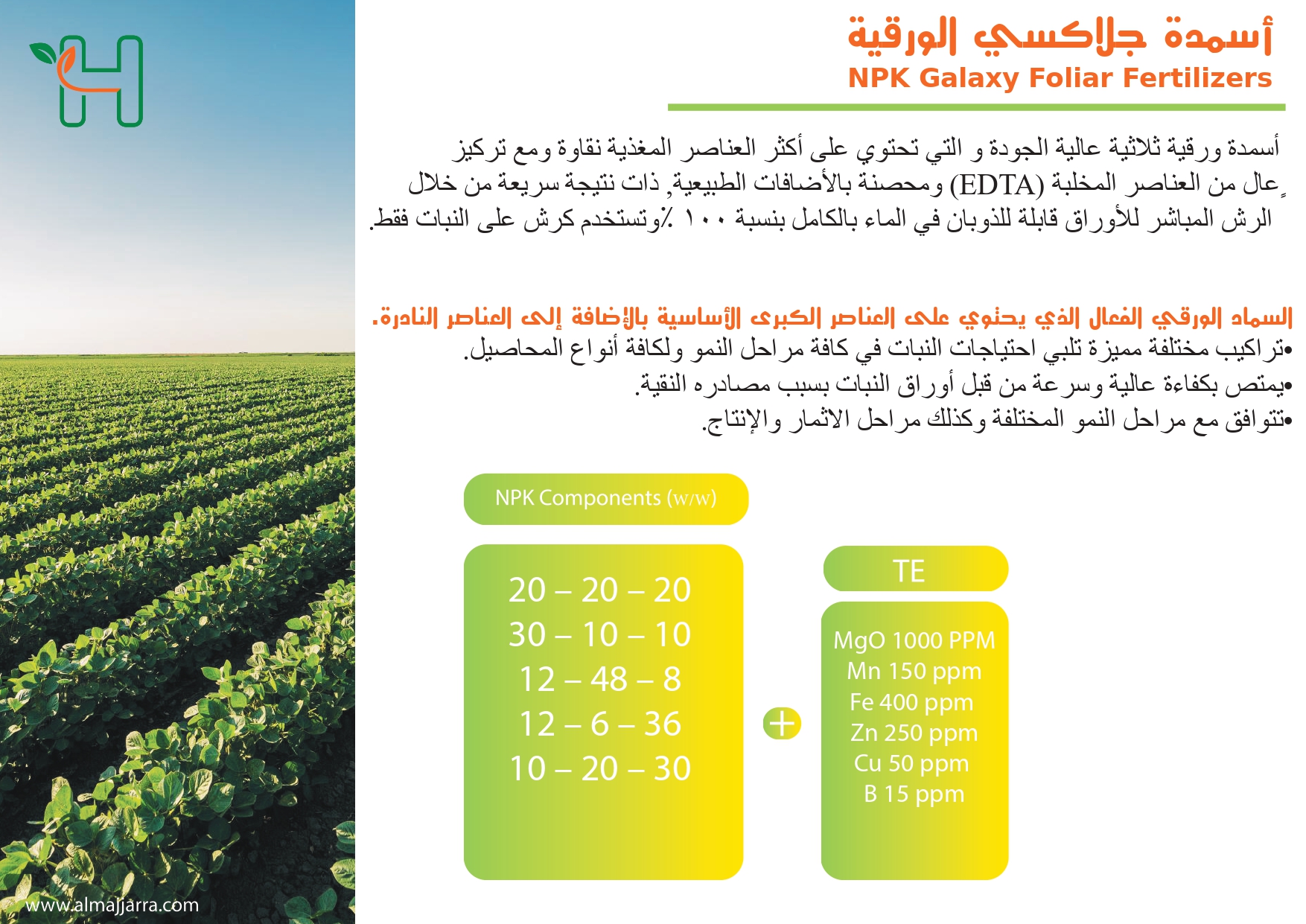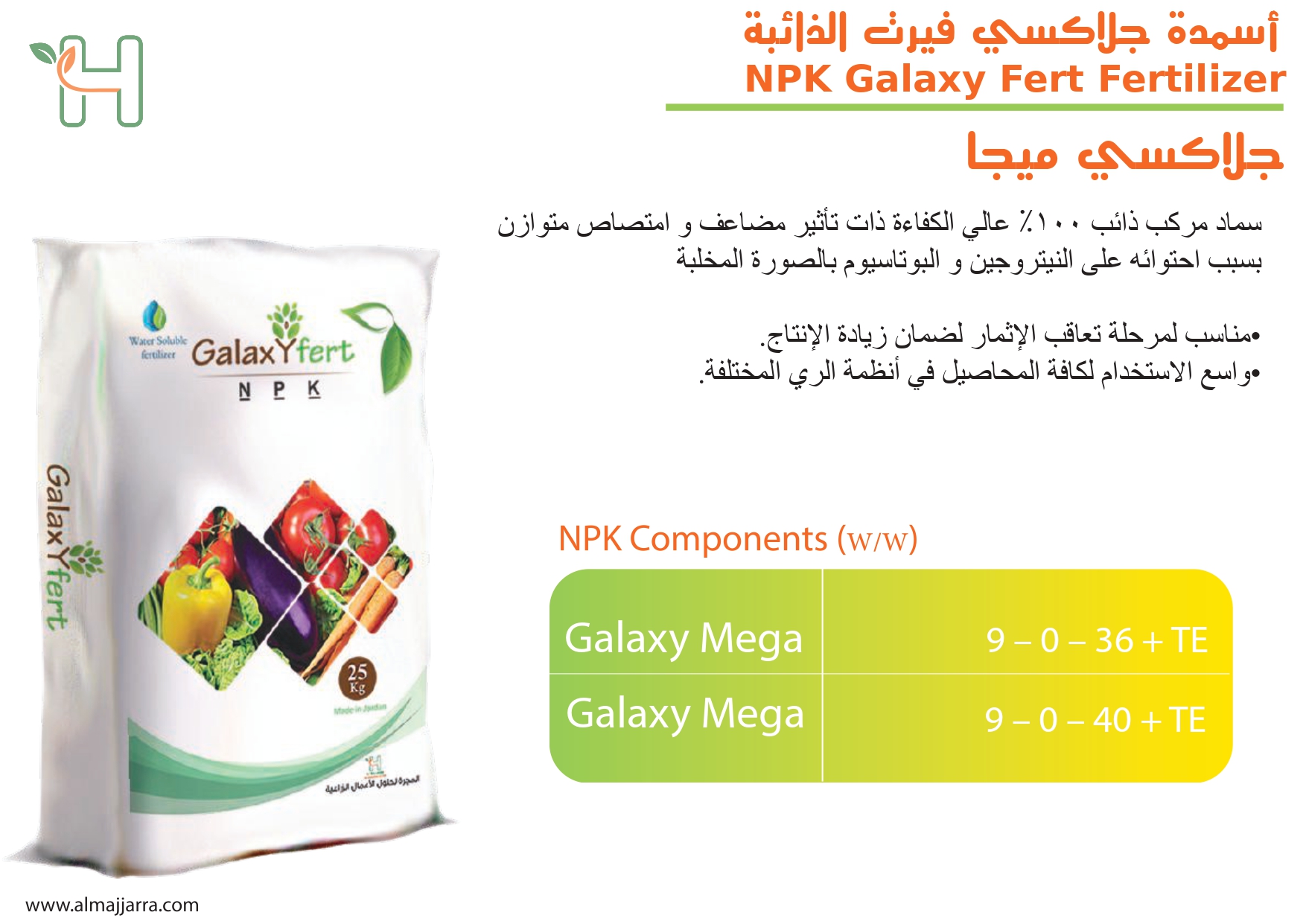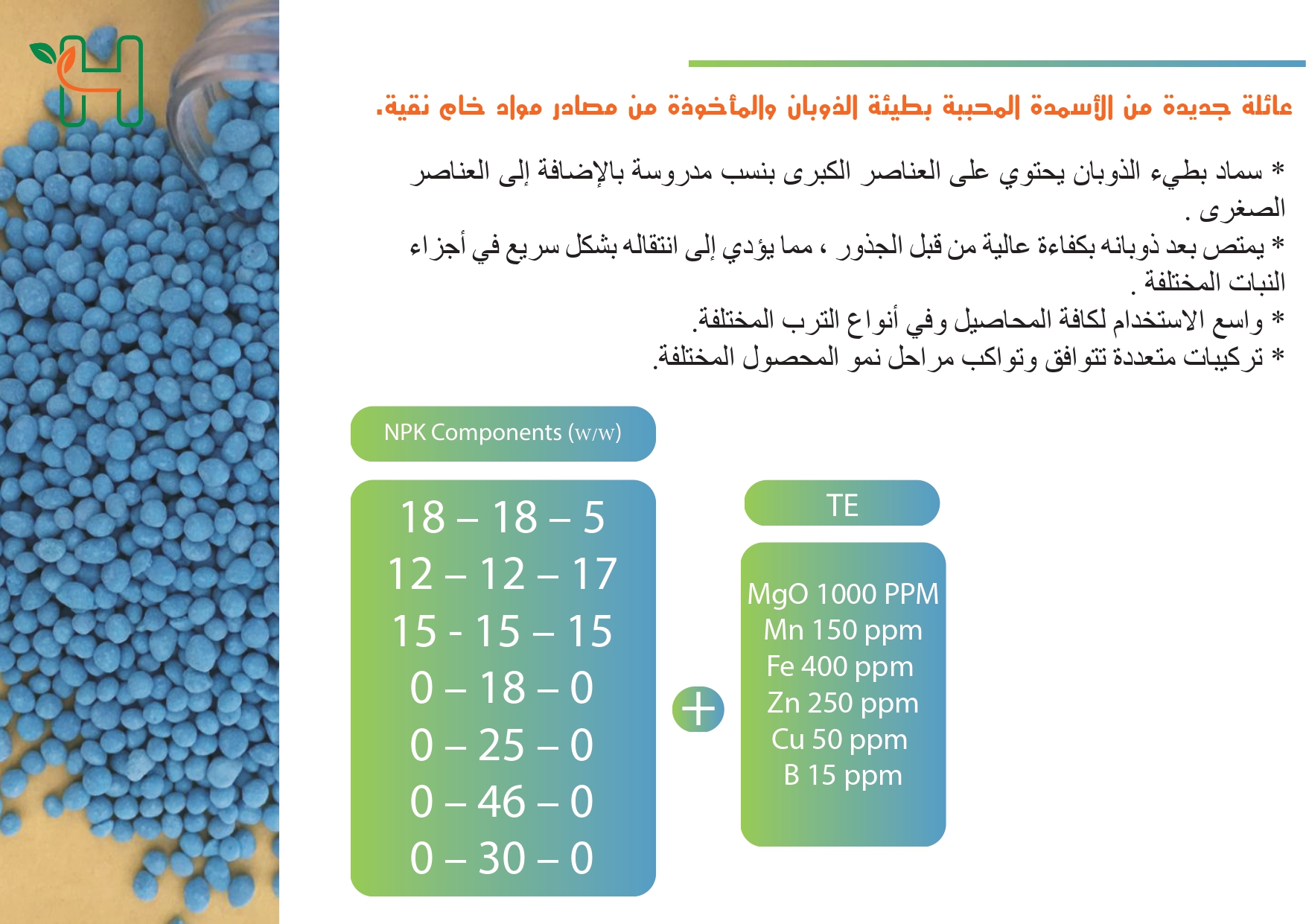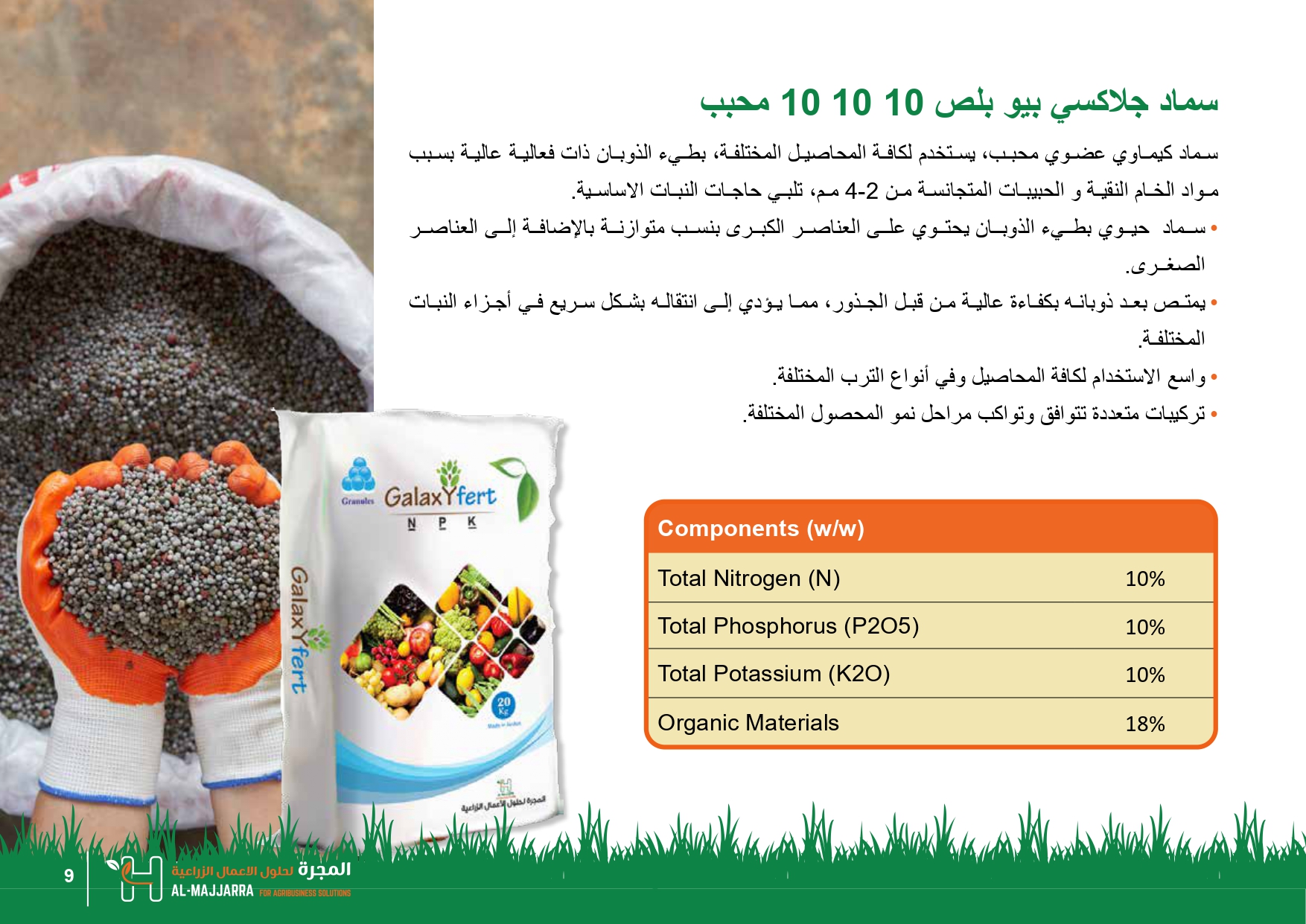 تأسس المصنع الوطني الأردني المتخصص في إنتاج الأسمدة في عمان - الأردن في عام 2008 لإنتاج الأسمدة المحببة والسائلة والبودرة والأسمدة المتخصصة "الأسمدة الحيوية البكتيرية" باستخدام أنقى مواد الأسمدة والعناصر المستخلبة لإنتاج أعلى جودة ممكنة في بأقل الأسعار التنافسية.